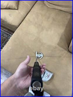 Scotty Cameron Futura putter – 34 inches in length – with original headcover, brand new pistolero plus grip installed at the PGA store, and a divot repair tool that fits in the headcover (i doubt the divot repair tool is authentic, but it fits perfectly in the headcover and looks identical to the authentic Scotty Cameron divot repair tools for this putter). The sole of the putter shows 35, but at some point, the putter had been modified to be 34 inches. The new grip makes this a joy to use (much better than the original red grips that came on this).
